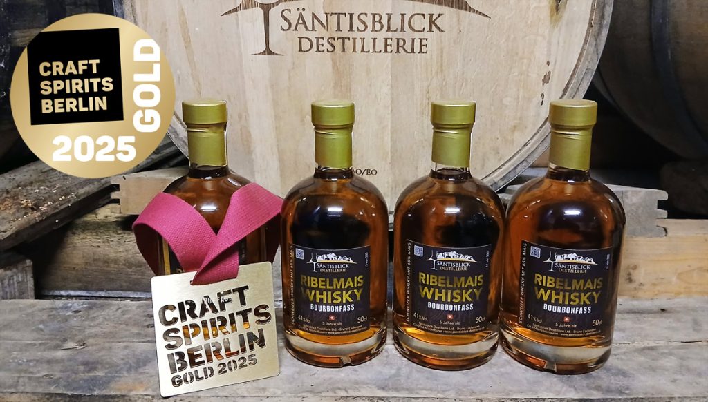 Gold-Award für unseren 5-jährigen Ribelmais-Whisky im Bourbonfass gereift an der Craft Spirits Berlin 2025! Details